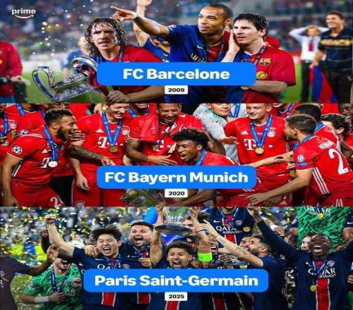 综上所述,三支6冠王,09巴萨最强,20拜仁次之,25巴黎含金量最低。
