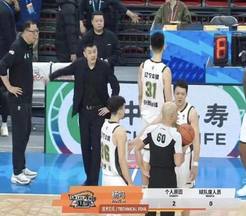 不过辽宁队主教练杨鸣对这次吹罚十分不满,他认为不应该是罚球,一直在和裁判抱怨,所以就有了第1个技术犯规;在吃到第1个技术犯规后杨鸣依旧喋喋不休,甚至还上手拉拽裁判,所以就有了第2次技术犯规,然后杨鸣被直接驱逐出场。临退场的时候他还在和裁判争论,并且和队内球员一一击掌后才不甘心的返回更衣室。杨鸣被驱逐后,外援威尔斯继续去和裁判员理论,同样他也吃到了1次技术犯规。